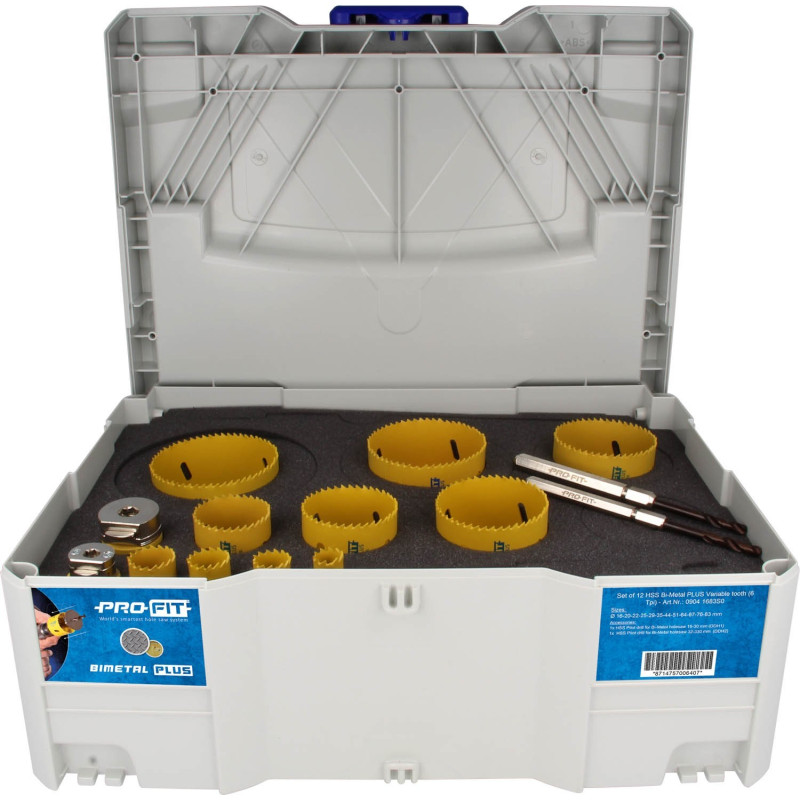 ProFit BiMetal PLUS gatzagen set in systainer 12 stuks 16-20-22-25-29-35-44-51-64-67-76-83 mm variabele tand en met van elk 1 st. Click & Drill centreerboor (HSS) DDH1 DDH2